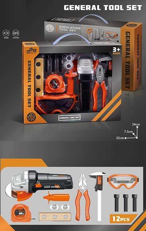 Набір інструментів 12 елементів, автоматична болгарка, на батарейках, аксесуари, у кор. /48-2/